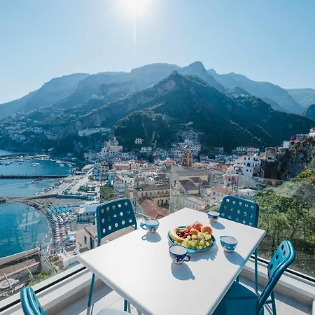 A Blue Amalfi - Luxury House With Private Rooftop apartman tengerre néző szobákat kínál, és elhelyezkedést, csupán 0.7 km-re az Amalfi kikötője területétől. Ez a 60 m^2-es apartman közvetlen hozzáférést biztosít a Luna Convento területéhez és 2 hálószobát foglal magába.